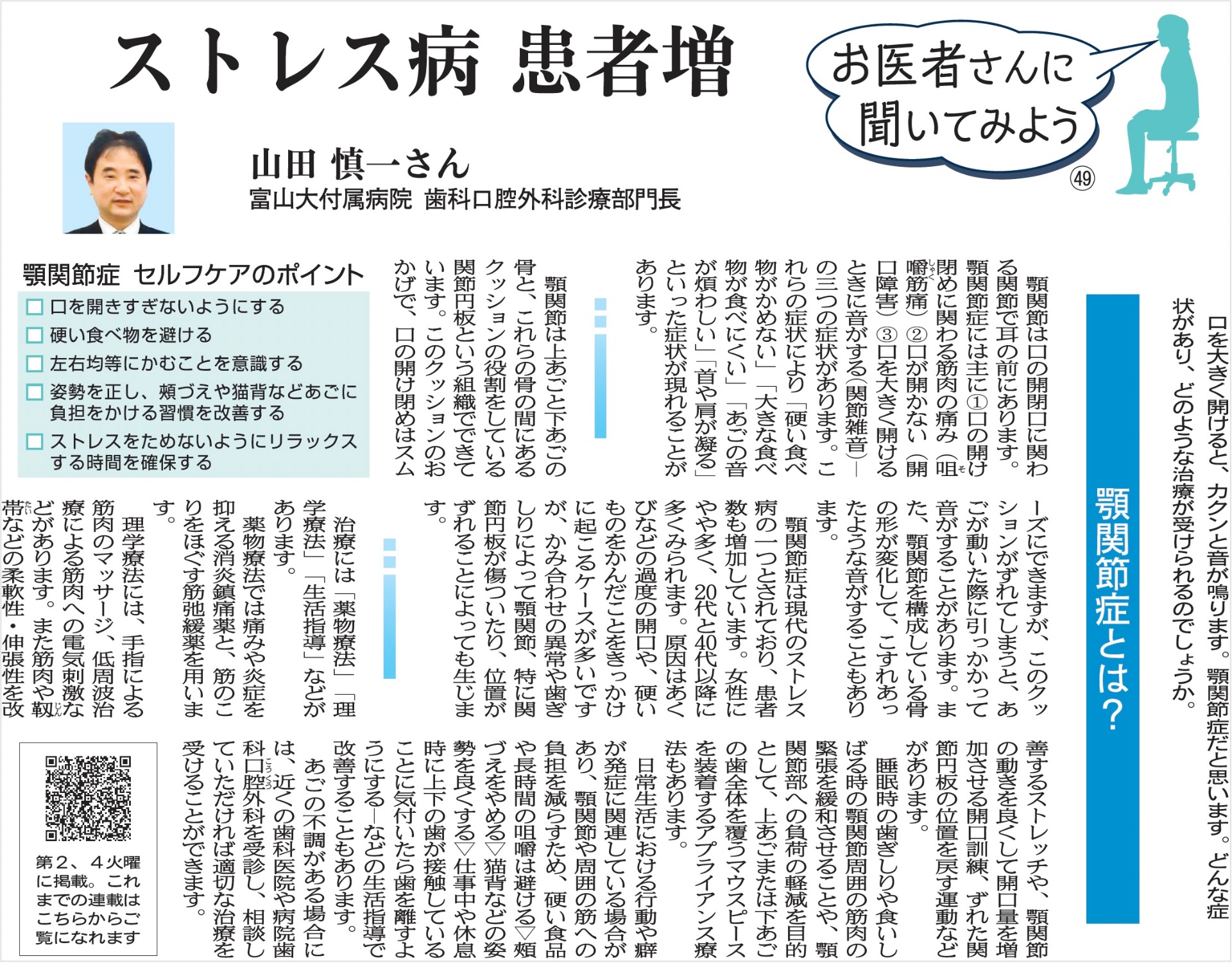 私どもの講座は医学教育機関に属しており、富山県唯一の大学病院の歯科口腔外科でも