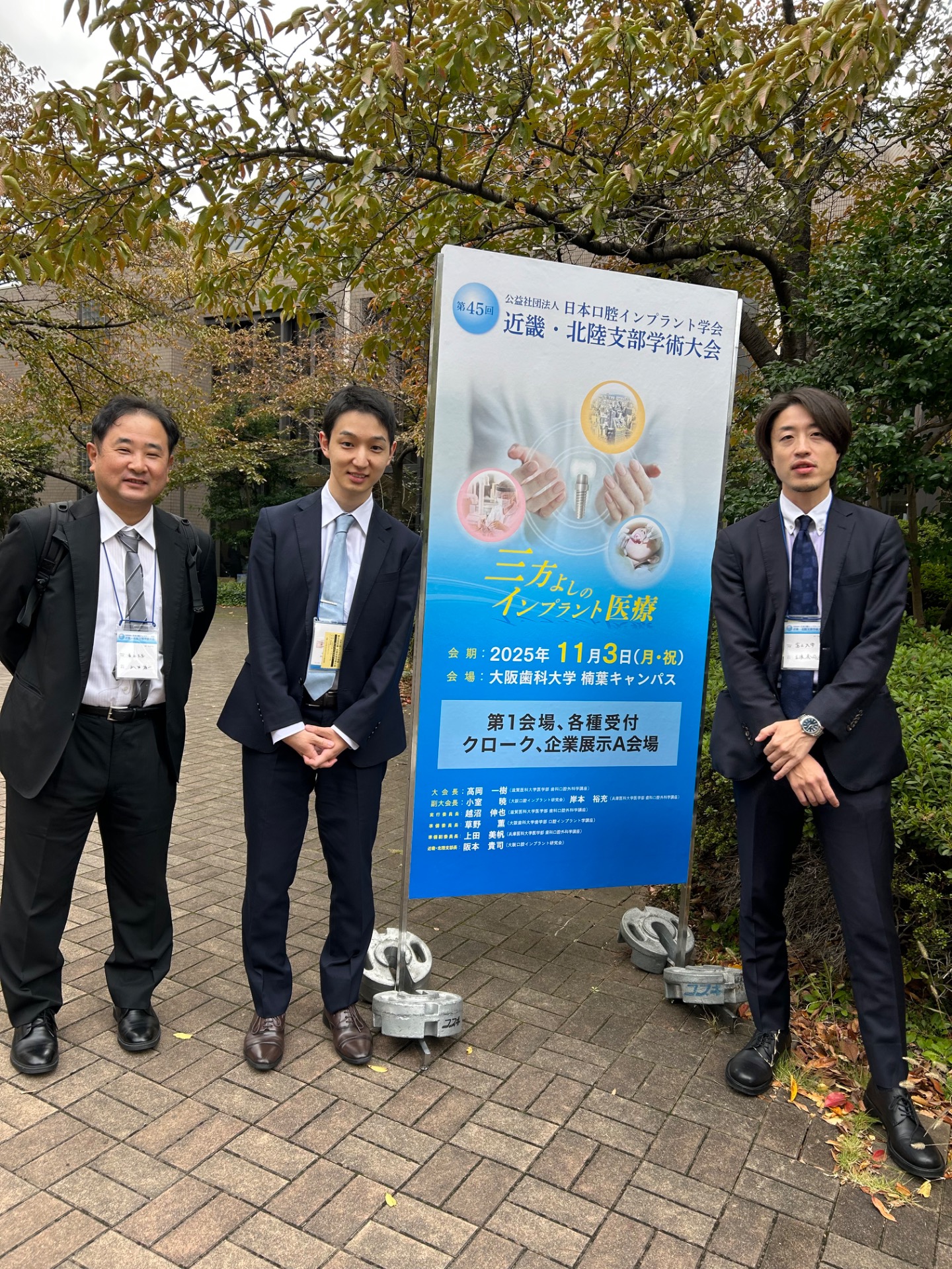 2025年11月2日(日)・3日(月・祝)に、大阪歯科大学 天満橋キャンパスおよび楠葉キャンパスにて開催された 公益社団法人日本口腔インプラント学会 第45回近畿・北陸支部学術大会 に、山田 慎一 教授、津野 宏彰 先生、立浪 秀剛 先生、高塚 団貴 先生 が参加されました。