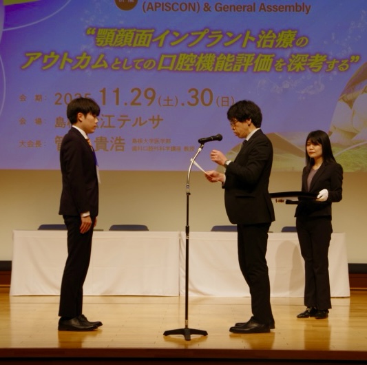 2025年11月29日・30日に島根で開催された日本顎顔面インプラント学会総会に、当講座から櫻井航太郎先生、尾﨑恵悟先生が参加しました。