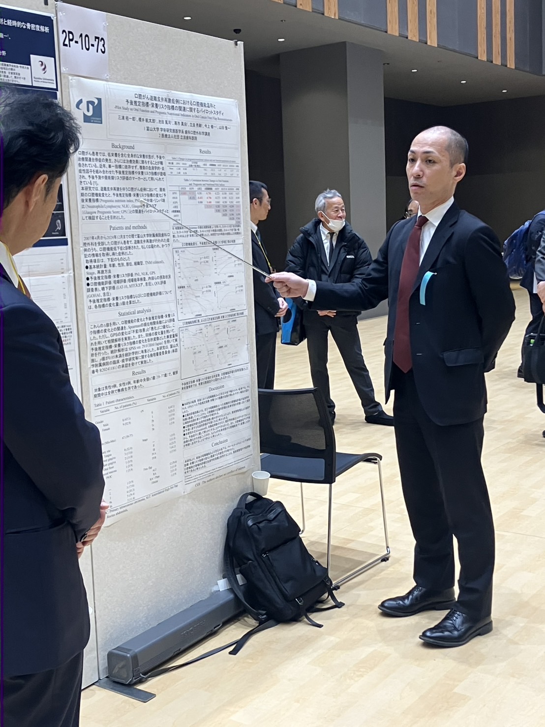 三浦桂一郎先生は、「口腔がん遊離皮弁再建症例における口腔機能温存と予後推定指標・栄養リスク指標の関連に関するパイロットスタディ」の演題で発表を行い、口腔がん再建後における口腔機能温存や予後評価に関する新たな視点を提示しました。