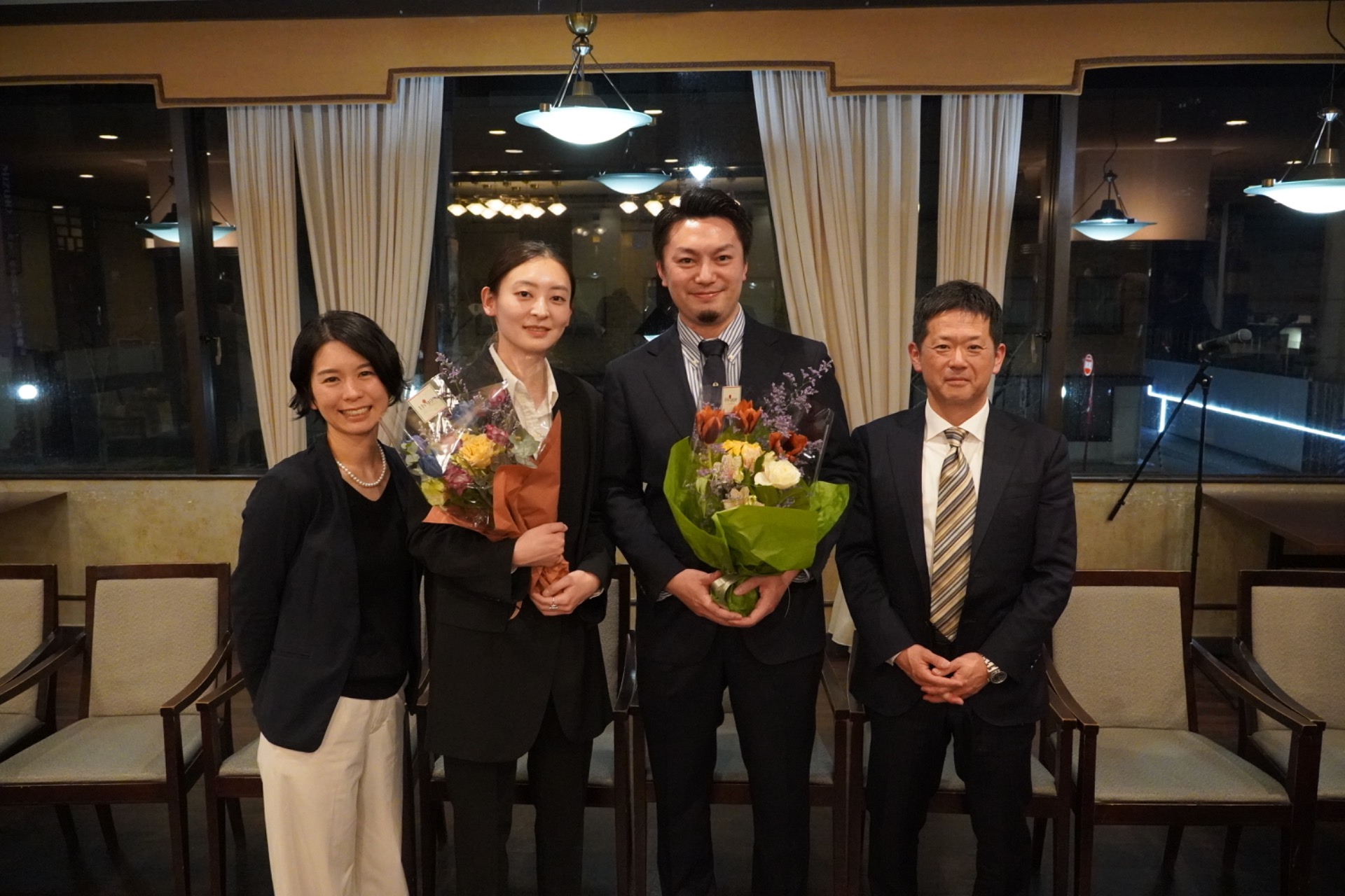 今年度は、森亮介先生、朝倉みな実先生、藤木充那先生、歯科衛生士の岡島静奈さんが退局されることとなり、これまでのご尽力への感謝の気持ちを込めて送別の場が設けられました。森先生は地元の開業歯科医院へ、朝倉先生、藤木先生、岡島さんは県内の歯科医院や病院へそれぞれ就職予定です。
