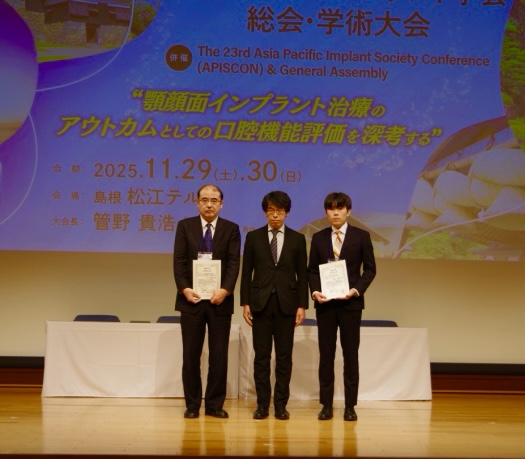 2025年11月29日・30日に島根で開催された日本顎顔面インプラント学会総会に、当講座から櫻井航太郎先生、尾﨑恵悟先生が参加しました。